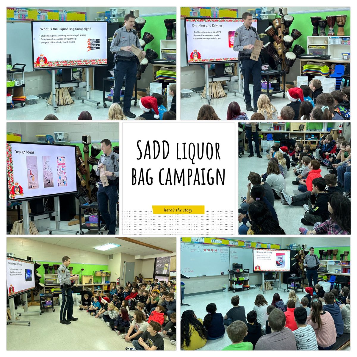 Thank you to officer Agotnes for doing a special mini assembly with our grade 4-6 classes about the SADD (Students Against Drunk Driving) liquor bag campaign. Our grade 4-6 students will be creating liquor bags and you will see them in the second half of December at Mico’s Liquor Store. Thank you in advance to our LPS community for staying safe this holiday season.